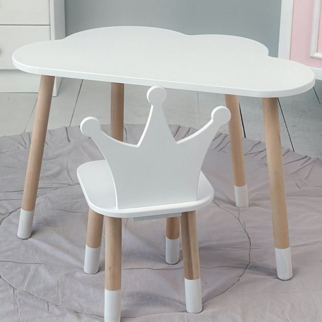 Стіл хмарка і стільчик дитячий біла корона столик для занять ігор їжі (99255)