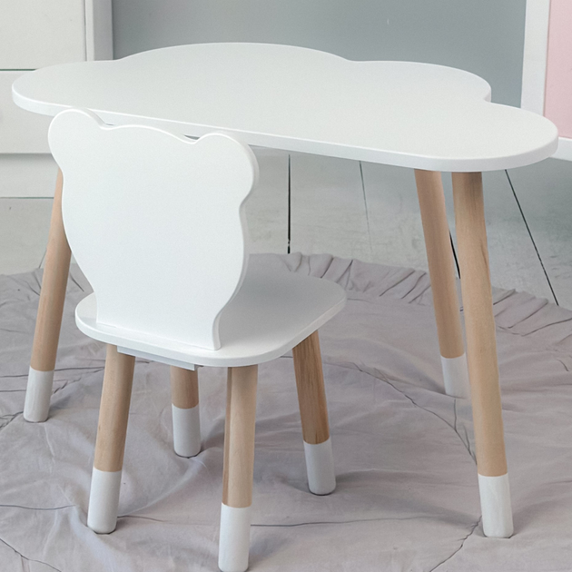 Стіл хмарка і стільчик дитячий білий мішка столик для занять ігор їжі (992577)