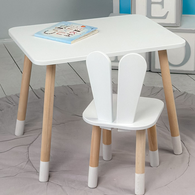 Прямокутний стіл та стіл дитячий білосніжний зайчи білий дитячий столик (376542)