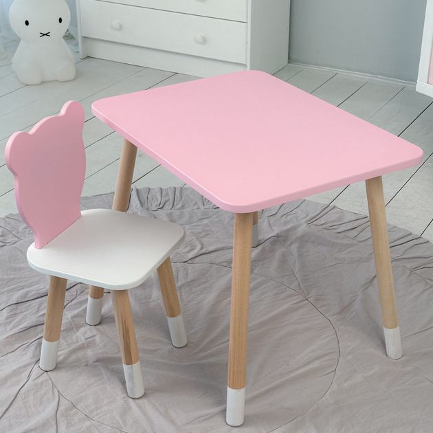 Дитячий прямокутний стіл і стільчик ведмежа з білим сидінням столик рожевий дитячий (112112)