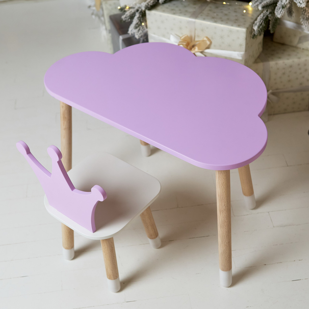 Стол хмарка та стільчик коронка фіолетовий дитячий столик для їжі гор занять (992524)