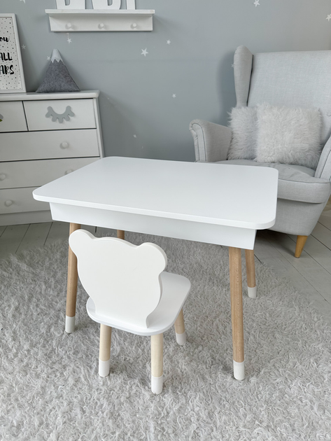 Столик з ящиком 54х60х45 і стільчик "ведмедик" 26.5х26х25, білий