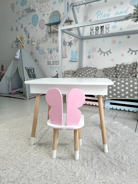 Дитячий прямокутний стіл і стільчик метелик із білим сидінням. Столик фіолетовий дитячий