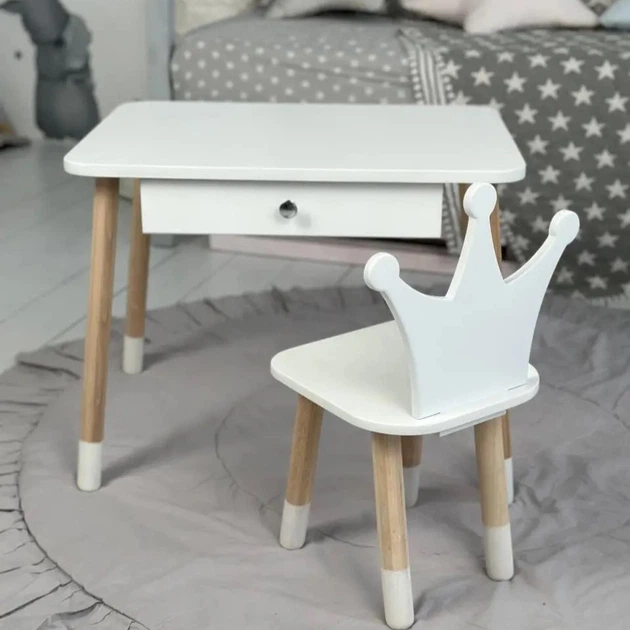 Столик дитячий прямокутний з шухлядою зі стільчиком Корона 54х60х45 Білий (96193)