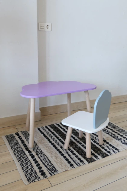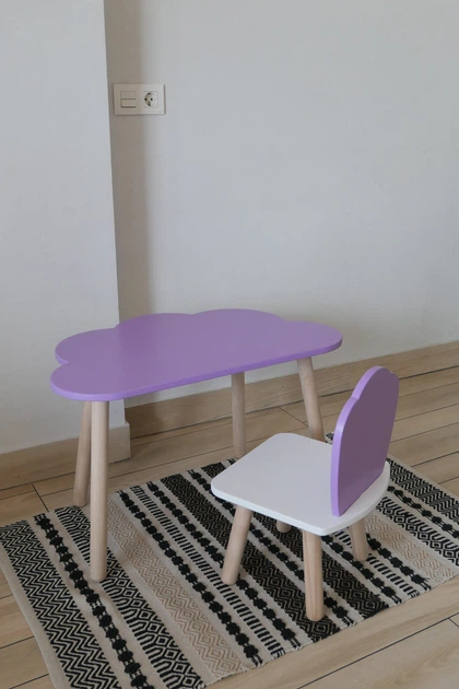 Комплект стіл та стілець дитячий ChildWood - Set Стіл бузковий хмаринка + стілець білий сирий Мушля (Фанера)