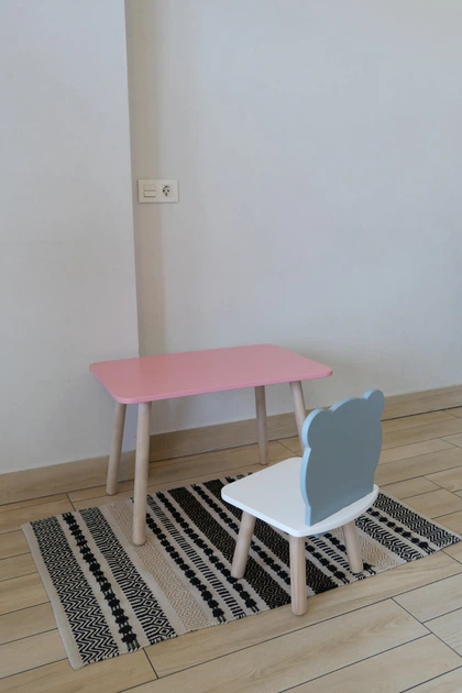 Комплект стіл та стілець дитячий ChildWood - Set Стіл розовий прямокутний + стілець білий сірий Мишка (Фанера)