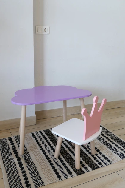 Комплект стіл та стілець дитячий ChildWood - Set Стіл бузковий хмаринка + стілець білий розовий Корона (Фанера)