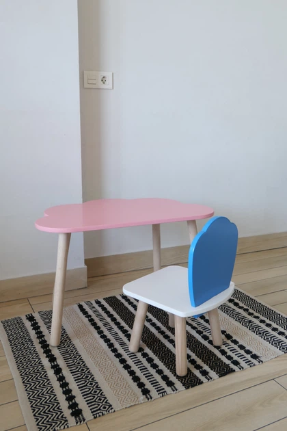 Комплект стіл та стілець дитячий ChildWood - Set Стіл рожевий хмаринка + стілець білий блакитний Мушля (Фанера)
