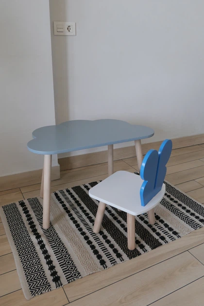Комплект стіл та стілець дитячий ChildWood - Set Стіл сірий хмаринка + стілець білий блакитний Метелик (Фанера)