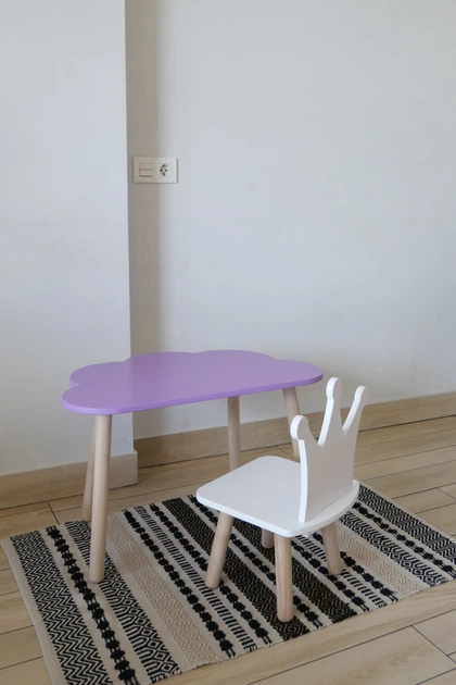 Комплект стіл та стілець дитячий ChildWood - Set Стіл бузковий Хмаринка + стілець білий Корона (Фанера)