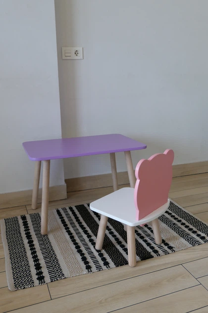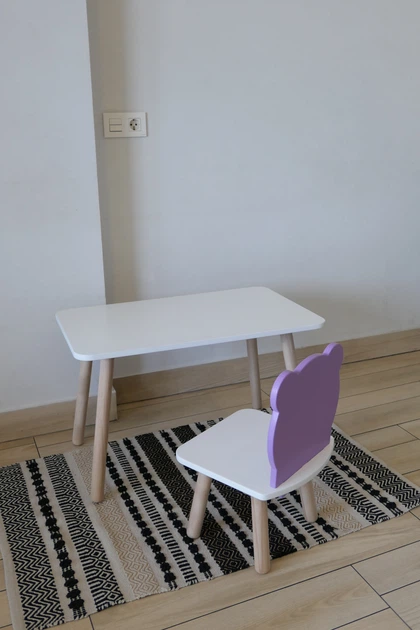 Комплект стіл та стілець дитячий ChildWood - Set Стіл білий прямокутний + стілець білий бузковий Медведик (Фанера)