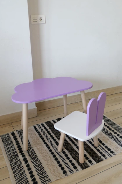 Комплект стіл та стілець дитячий ChildWood - Set Стіл бузковий хмаринка + стілець білий бузковий Зайчик (Фанера)