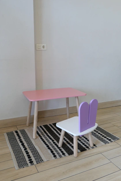 Комплект стіл та стілець дитячий ChildWood - Set Стіл розовий прямокутний + стілець білий бузковий Зайчик (Фанера)