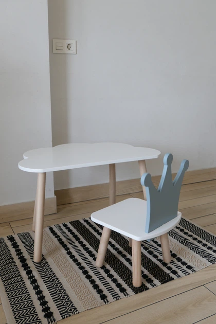 Комплект стіл та стілець дитячий ChildWood - Set Стіл білий хмарина + стілець білий сірий Корона (Фанера)