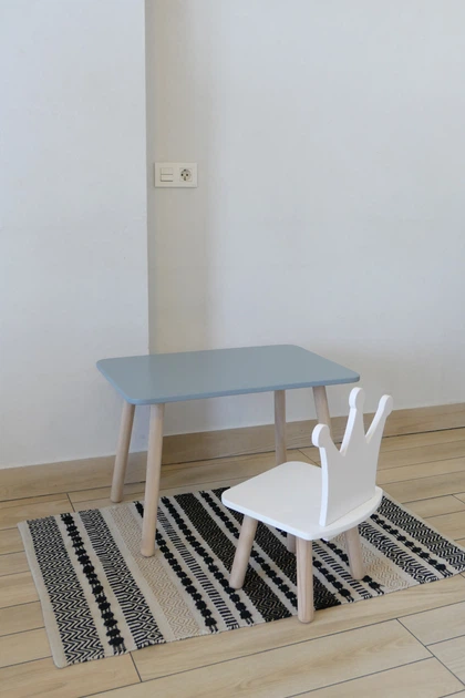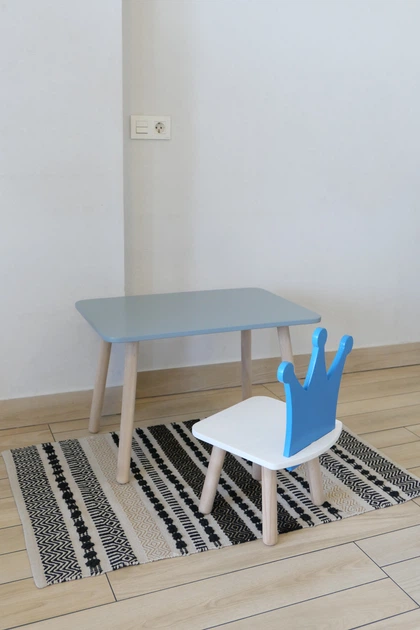 Комплект стіл та стілець дитячий ChildWood - Set Стіл сірий прямокутний + стілець білий синій Корона (Фанера)