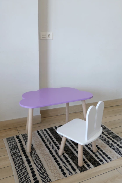 Комплект стіл та стілець дитячий ChildWood - Set Стіл бузковий Хмаринка + стілець білий Зайчик (Фанера)