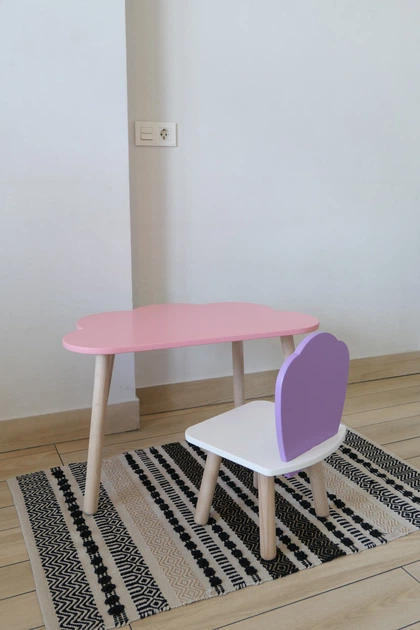 Комплект стіл та стілець дитячий ChildWood - Set Стіл рожевий хмаринка + стілець білий бузковий Мушля (Фанера)