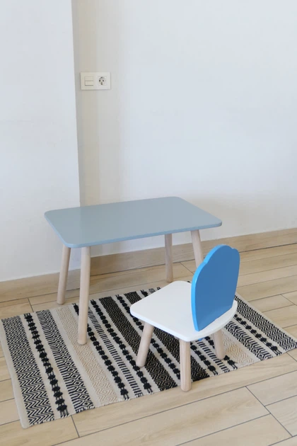 Комплект стіл та стілець дитячий ChildWood - Set Стіл блакитний хмаринка + стілець білий Мишка (Фанера)