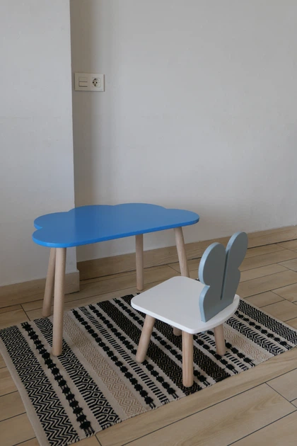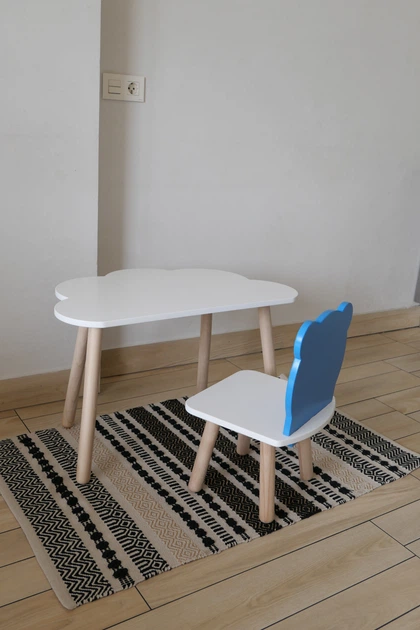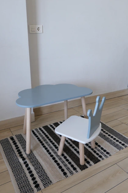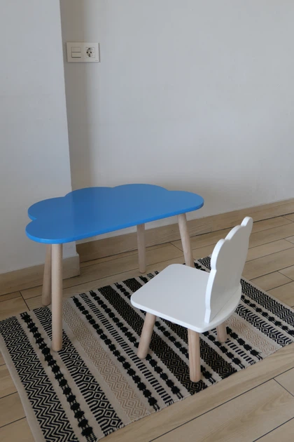 Комплект стіл та стілець дитячий ChildWood - Set Стіл блакитний хмаринка + стілець білий Мишка (Фанера)