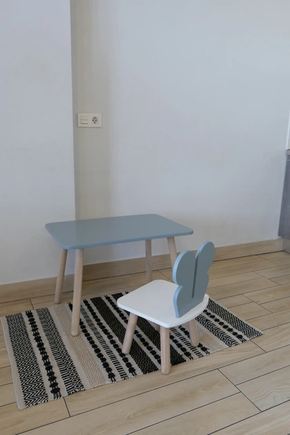 Комплект стіл та стілець дитячий ChildWood - Set Стіл сірий прямокутний + стілець білий зайчик (Фанера)