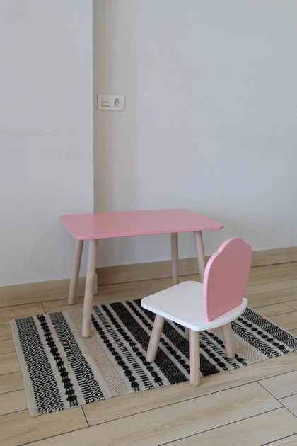 Комплект стіл та стілець дитячий ChildWood - Set Стіл рожевий прямокутний + стілець білий рожевий Мушля (Фанера)