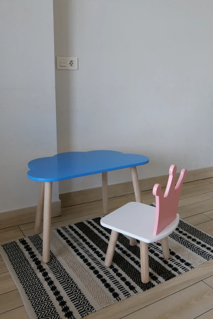 Комплект стіл та стілець дитячий ChildWood - Set Стіл блакитний хмаринка + стілець білий рожевий Корона (Фанера)