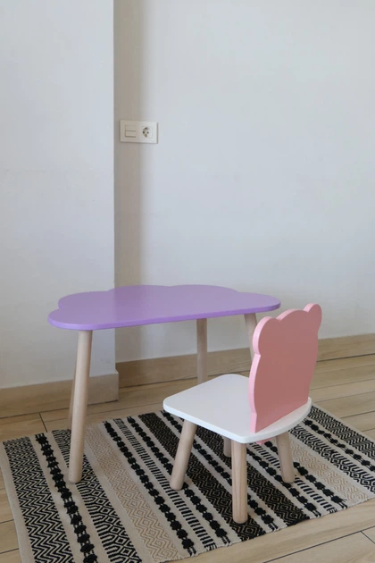 Комплект стіл та стілець дитячий ChildWood - Set Стіл бузковий хмаринка + стілець білий сирий Корона (Фанера)