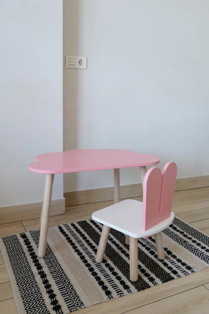Комплект стіл та стілець дитячий ChildWood - Set Стіл рожевий хмаринка + стіл білий рожевий Зайчик (Фанера)