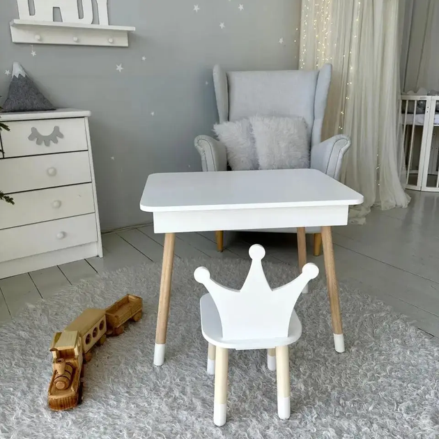 Столик з ящиком для олівців та стільчик No Brand Корона 54х60х45 см Білий (2330428614)
