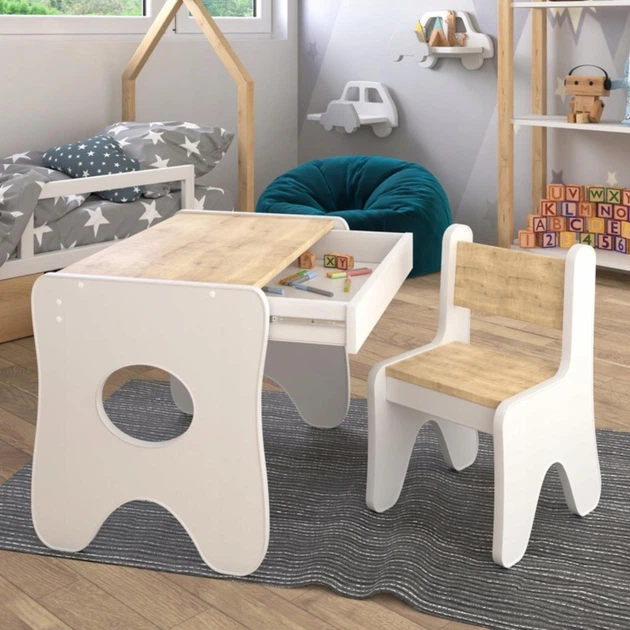 Дитячий столик і стілець 704551/ ігровий набір для дітей стіл та стільчик / білий з деревом