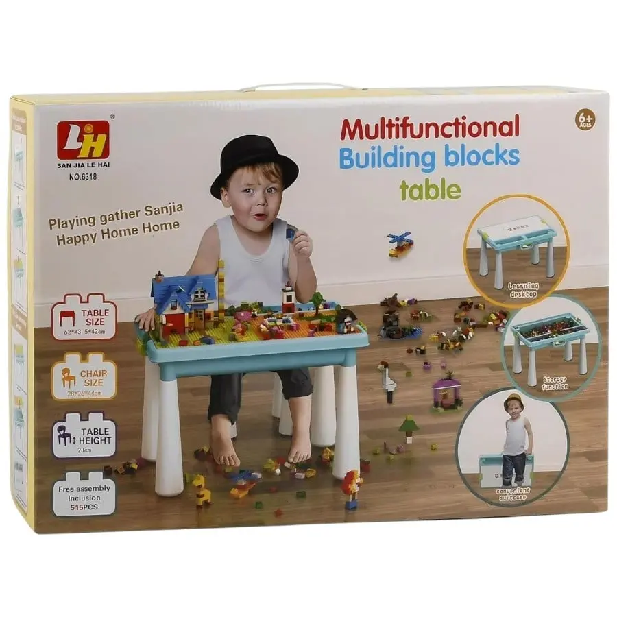 Дитячий столик 8020-209 з конструктором деталей дошка для малювання стілець кошики для зберігання