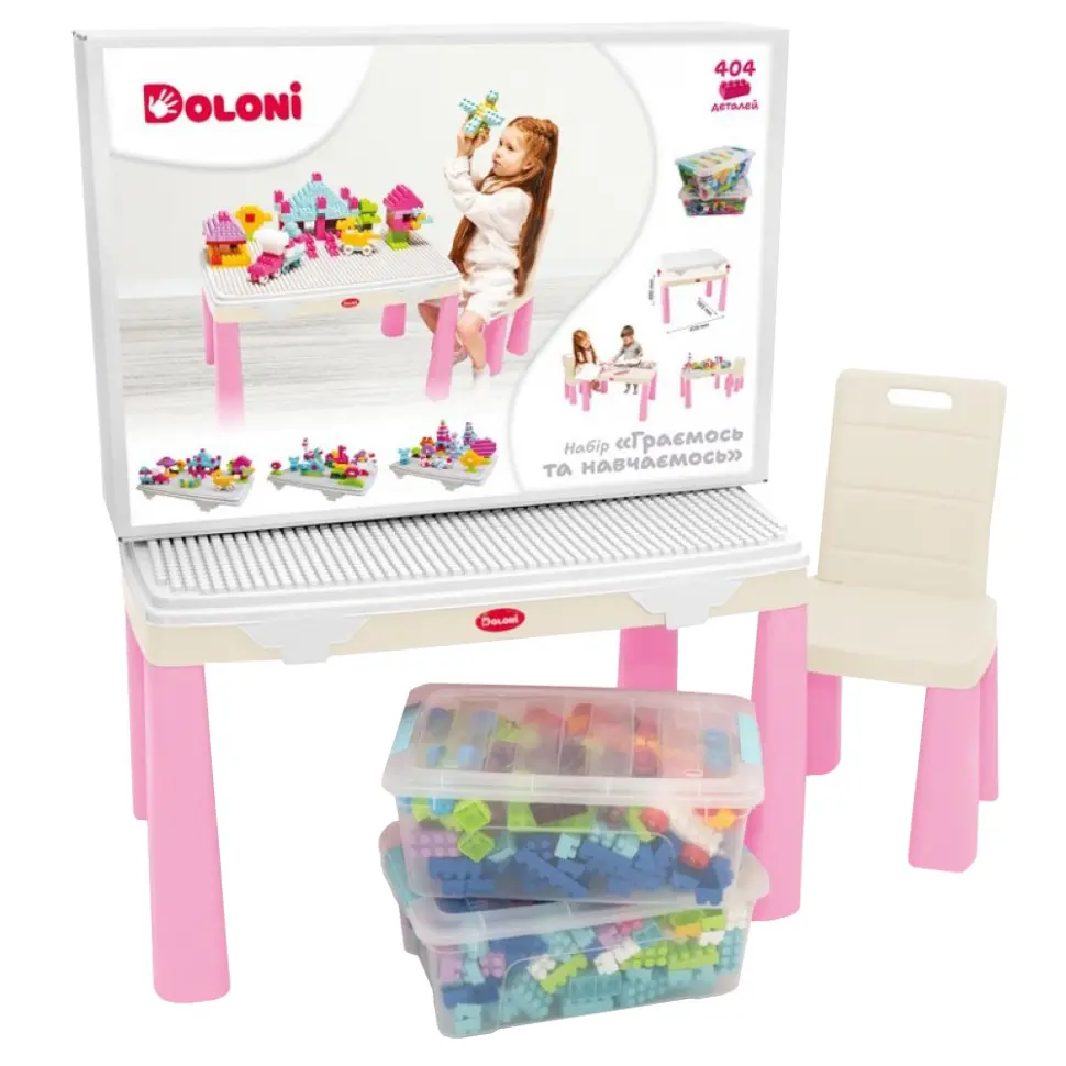 Дитячий набір "Граємось та навчаємось" 04660/2 в наборі стіл, стілець, конструктор