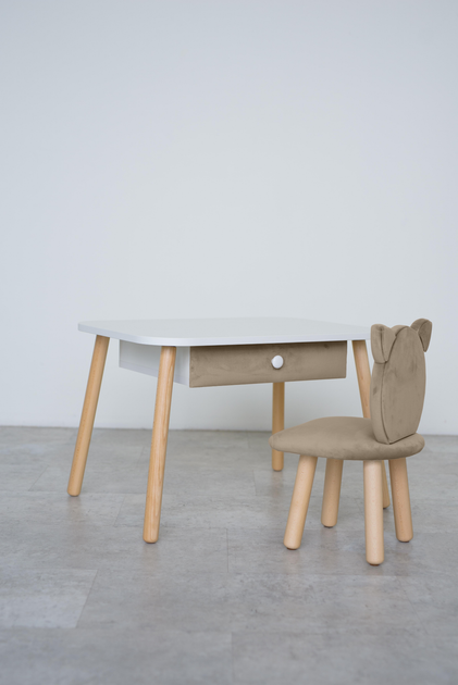 Комплект: столик з шухлядою та стільчик Dreamer Ведмедик, 2-4 роки, Бежевий