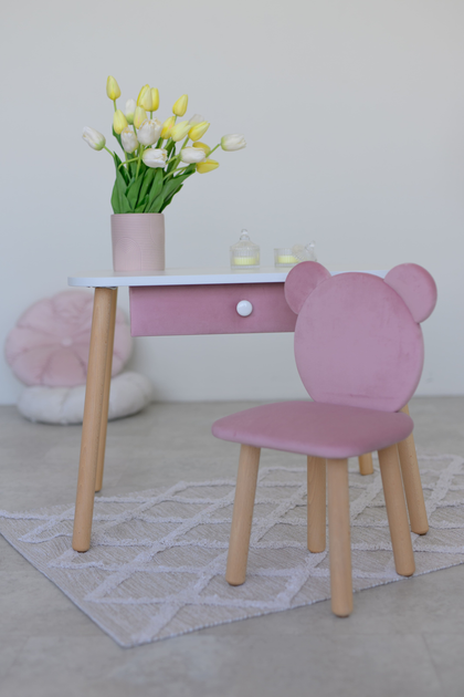 Комплект: столик з шухлядою та стільчик Dreamer Ведмедик, 3-5 років, Ніжно-рожевий