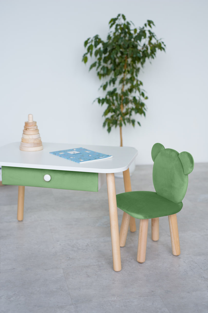 Комплект: столик з шухлядою та стільчик Dreamer Ведмедик, 5-7 років, Зелений
