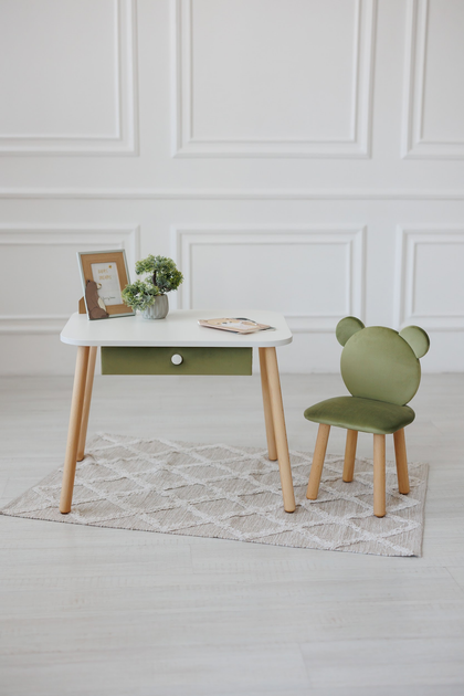 Комплект: столик з шухлядою та стільчик Dreamer Ведмедик, 3-5 років, Оливка