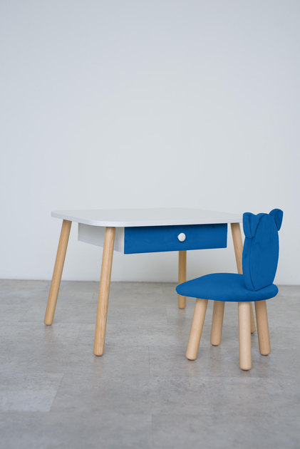 Комплект: столик з шухлядою та стільчик Dreamer Ведмедик, 2-4 роки, Блакитний