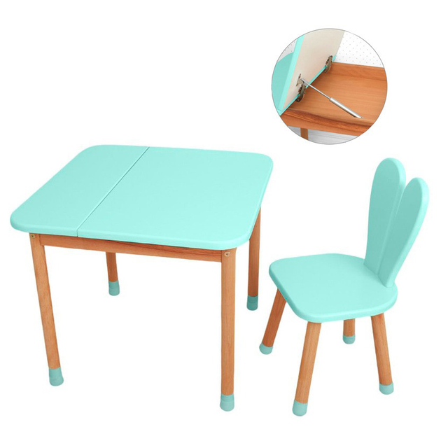 Столик зі стільцем "Зайченя" 04-025B-BOX з ящиком, бірюзовий 60х60 см