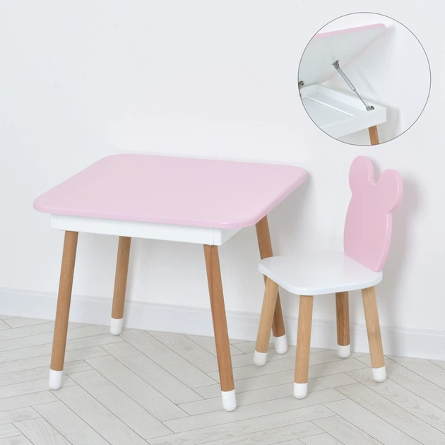 Столик зі стільцем "Ведмедик" 07-025R-BOX з ящиком, рожево-білий.