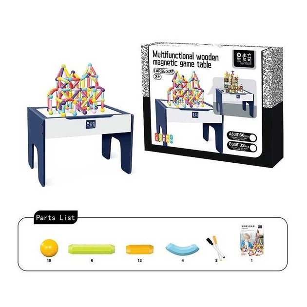 Магнітний конструктор xc-b 28 (4) 32 деталі, дерев’яний стіл 55х38х39 см, двостороння дошка для малювання, маркери, в коробц