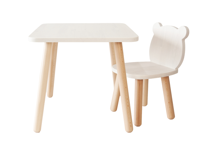 Дитячий комплект стіл та стілець KASHTANCHIK Ведмедик 4-7 років білий
