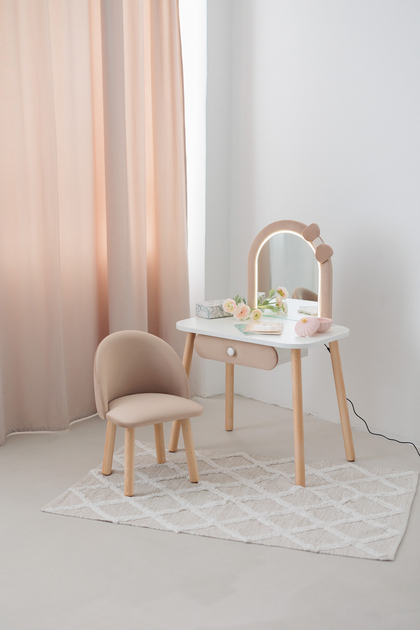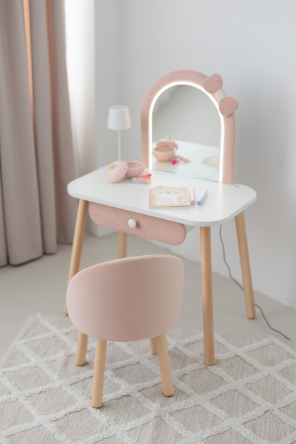 Комплект: Дитяче трюмо З ПІДСВІЧУВАННЯМ + кріселко (з бантиком), 2-4 роки, 90-105 см., Пудра