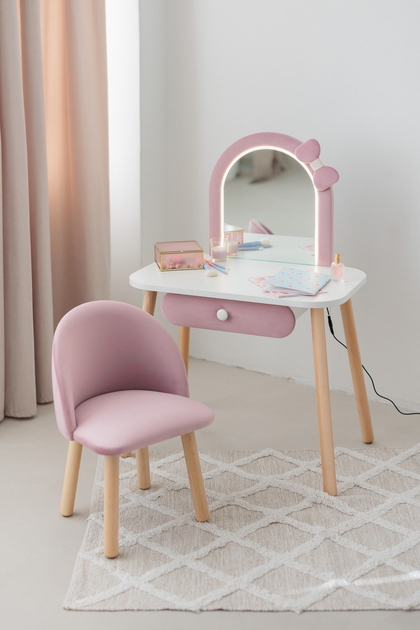 Комплект: Дитяче трюмо З ПІДСВІЧУВАННЯМ + кріселко (з бантиком), 3-5 років, 105-115 см., Ніжно-рожевий