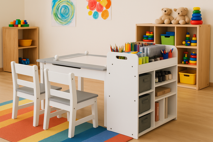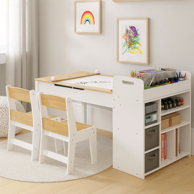 Дитячий набір Costway Fantastik 3 в 1: стіл, 2 стільці, мольберт натуральний