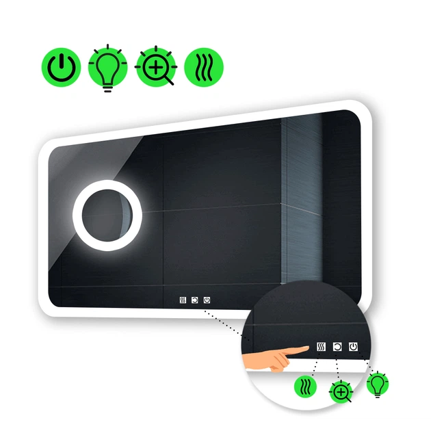 Прямокутне дзеркало з LED підсвіткою 90 на 80 см, з трьома сенсорами, підігрівом,та лінзою з підсвіткою модель Simphony La M