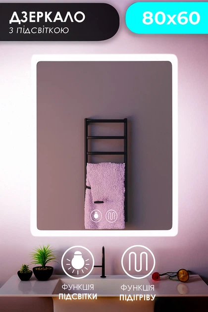 Дзеркало з підсвіткою LED 80х60 см дзеркало для ванної кімнати настінне смарт дзеркало з підігрівом BRS