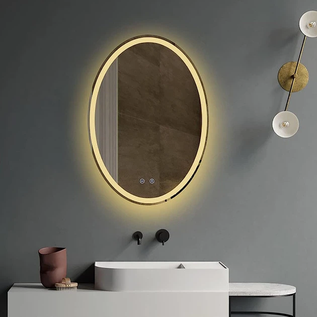 Закруглене дзеркало з LED підсвіткою 60 на 90 см, з Механічним вимикачем, модель Anvi La Mir (anvi67)