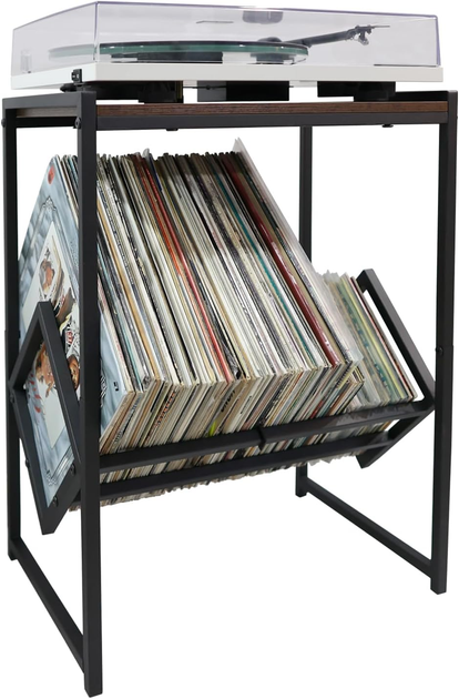 Стіл стелаж для вінілового програвача грамофона з підставкою для вінілових платівок містимося до 100 штук 64.5х45х32 см