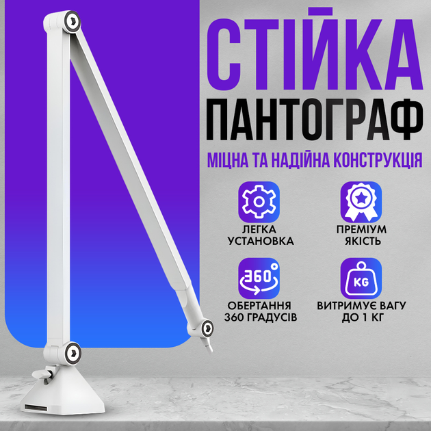 Настільний кронштейн/пантограф для мікрофона або телефону з вбудованою лампою на акумуляторі