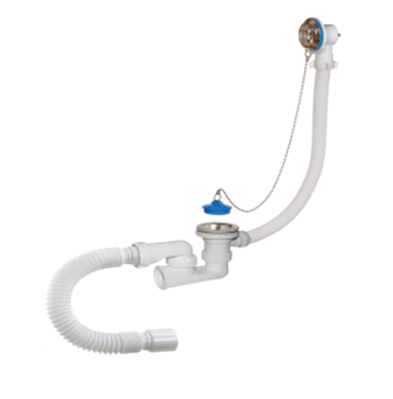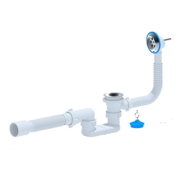 Сифон для ванни з переливом регульований, з гнучкою гофротрубою 40х40/50,АВ-600821
